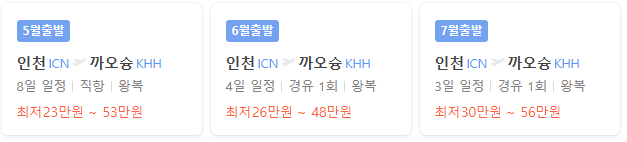 - 왕복 : 최저가 약 22만원 (가오슝 공항)