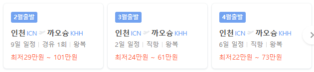| 대만 가오슝 항공권 비행기표 최저가 정보 (비행시간) (0) | 2025.01.18 |