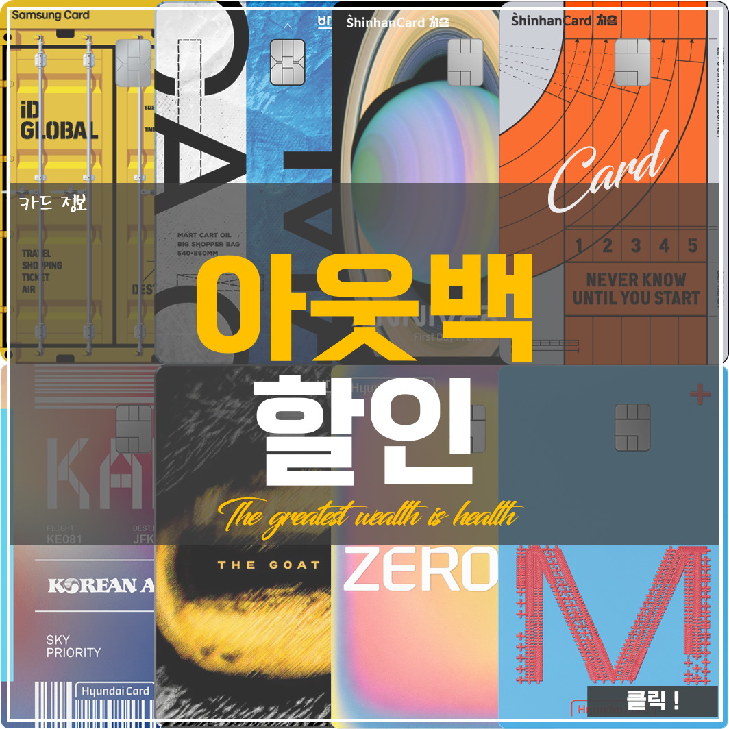 신용카드 할인 아웃백에서 사용할 수 있는 여러 신용카드가 있습니다. 예를 들어, 몇몇 카드들은 특정 조건을 만족할 경우 20%까지 할인 혜택을 제공하기도 합니다.