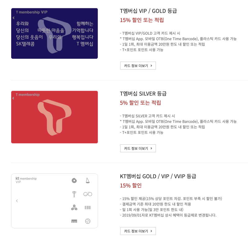 아울러, 각 통신사 회원카드는 사용 횟수 및 최대 할인 금액에 대한 제한이 있으니, 미리 알아보고 사용하는 것이 좋습니다.