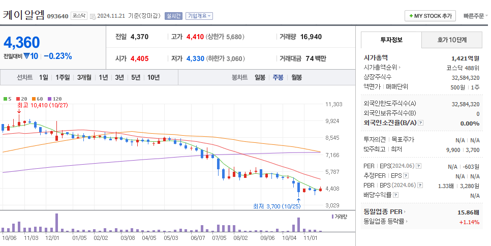 | 케이알엠 시세 분석 및 주가 전망 (+전문가 의견) (3) | 2024.11.26 |