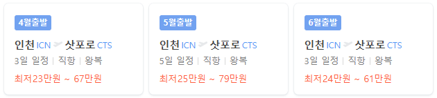 삿포로 항공권 가격