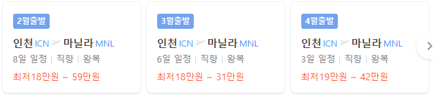 필리핀 마닐라 항공권 비행기표 최저가 정보 (비행시간)